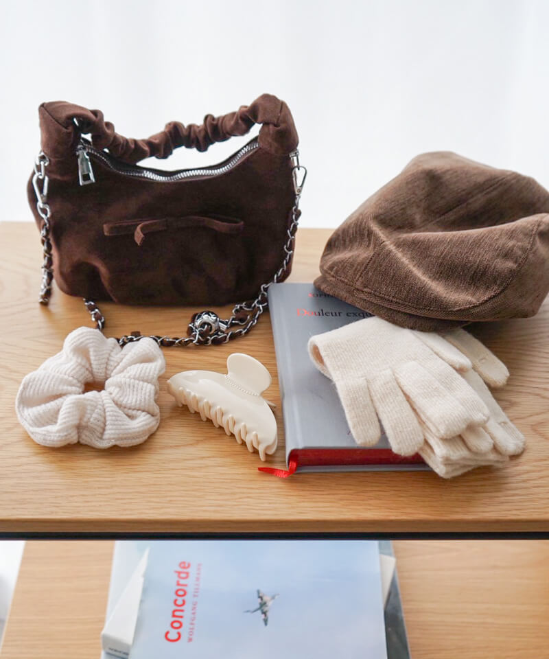 スエード素材×チェーンショルダーの組み合わせでトレンド感も◎