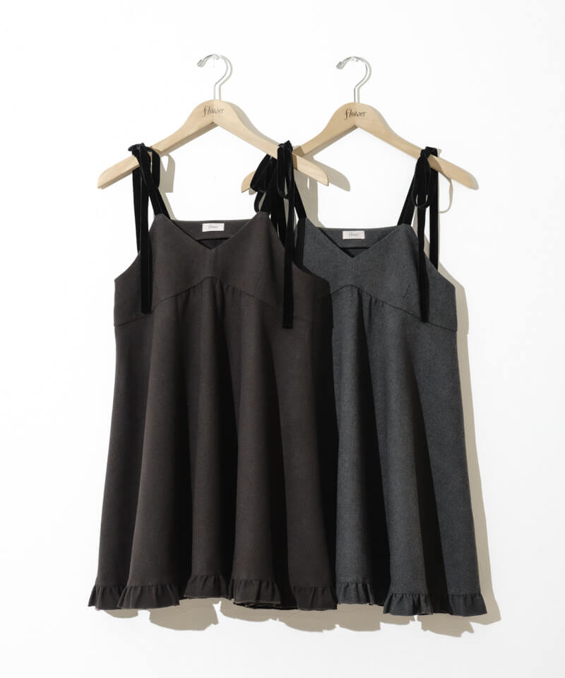 ベロアリボンの肩紐がガーリーなデザインポイント♪