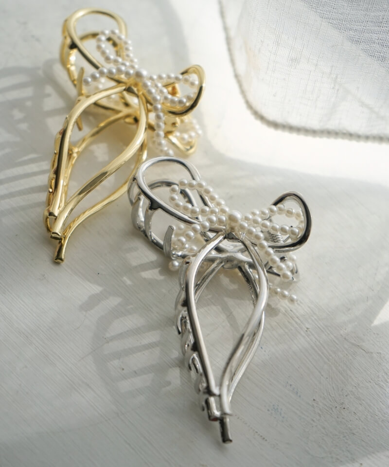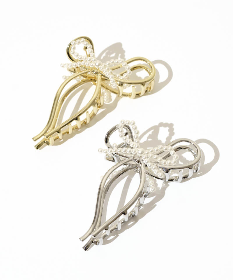 パールリボンとメタルリボンがヘアスタイルを華やかに♪