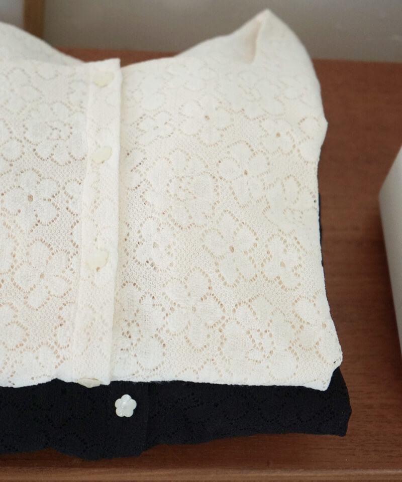 ※実物カラーに最も近いお色味はこちらです。バックスタイル首元は女性らしいすっきりとしたスクエアネックに♪フロントに透明感たっぷりなお花ボタンを並べて、他にはない華やかなデザインに仕上げました!----透け感:ブラック涼しげなニットソー素材を使用しているので、春夏にはもちろん晩夏まで着られます◎-首元は女性らしいすっきりとしたスクエアネックに♪フロントに透明感たっぷりなお花ボタンを並べて、他にはない華やかなデザインに仕上げました!---透け感:アイボリー涼しげなニットソー素材を使用しているので、春夏にはもちろん晩夏まで着られます◎-取り扱い絵表示タグ