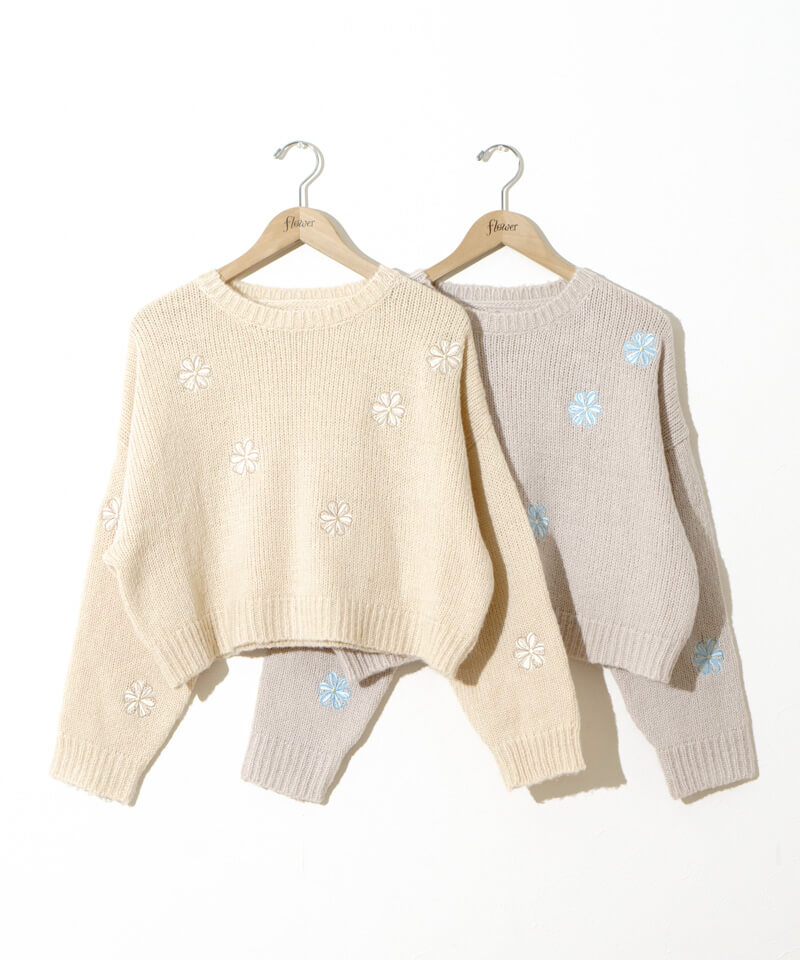 華やかなお花の刺繍が散りばめられたニットトップス♪